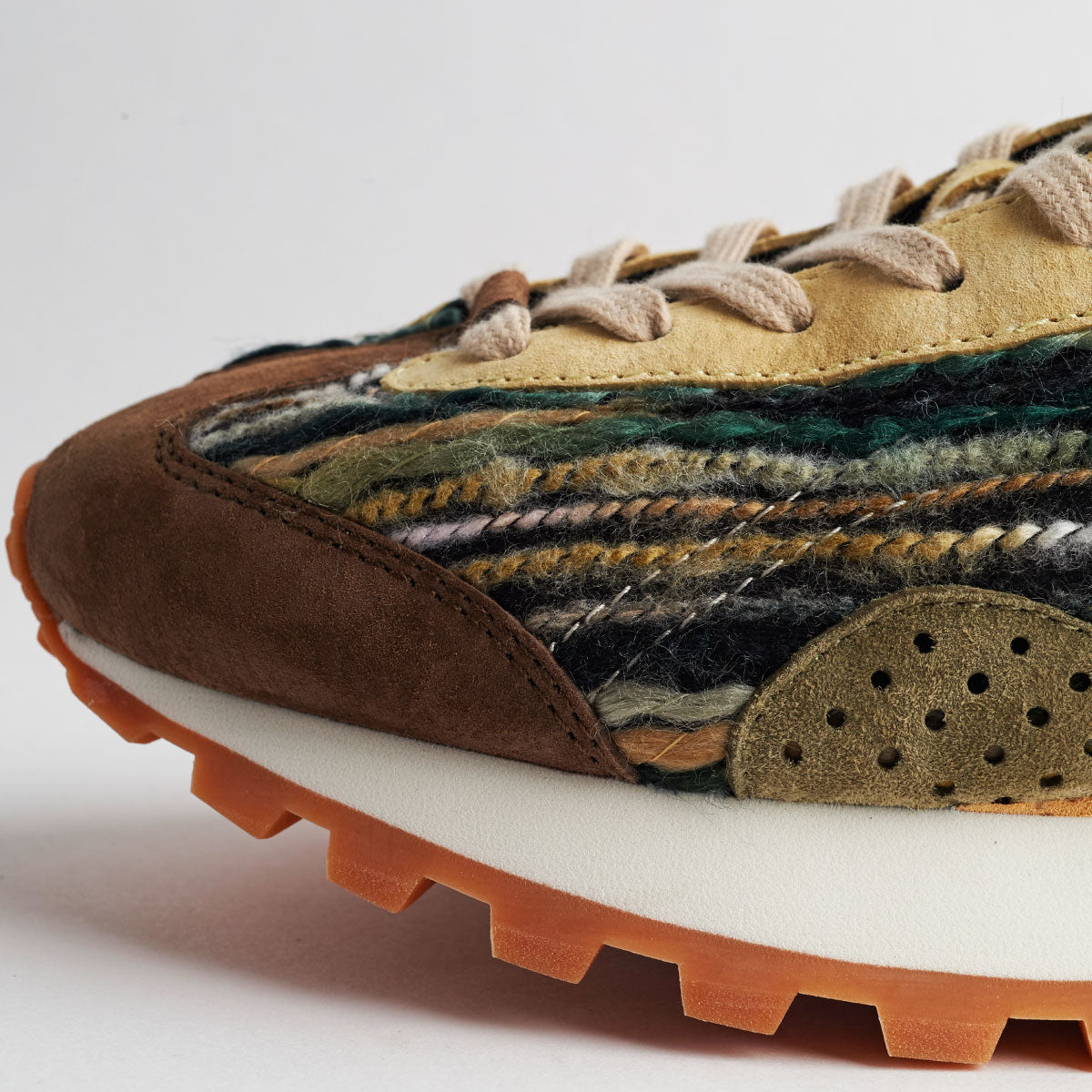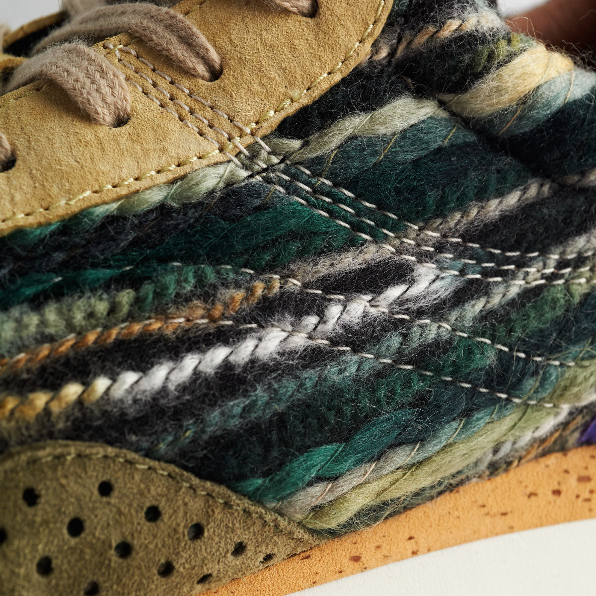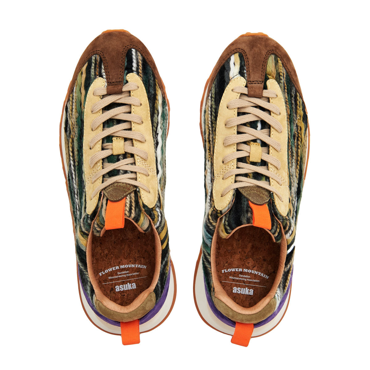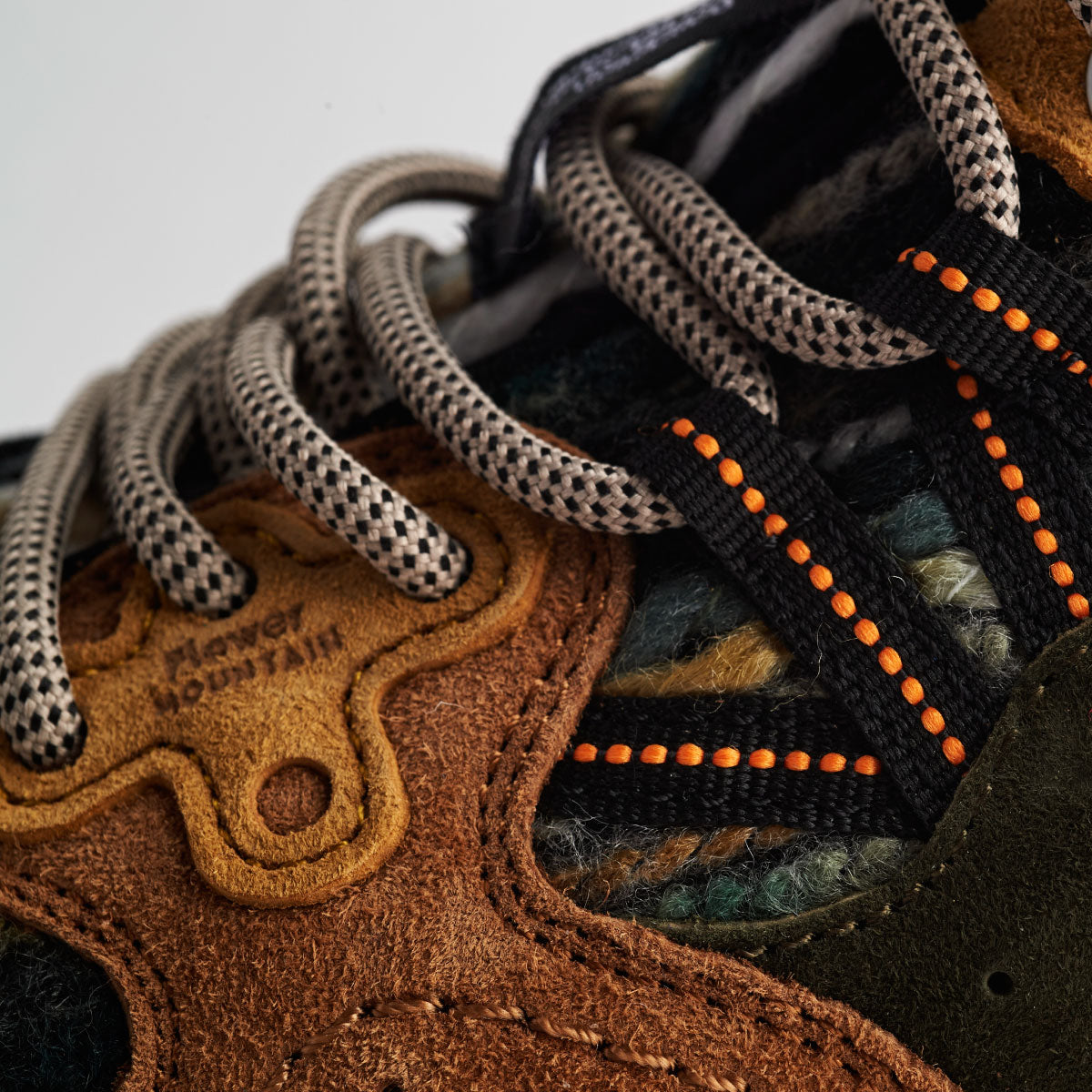 ランニングスニーカーが軽さを求め、素材が革やコットンキャンバスからナイロンなどの化繊に進化した70年代。シンプルで何処かノスタルジックを感じる名作が各ブランドからいくつも発表された。それらをリスペクトしつつフラワーマウンテンのエッセンスを取り入れた新作” ASUKA2 “。