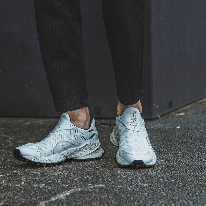蜂の巣や亀の甲羅など自然界が形づくる安定した構造「ハニカム形状」をモチーフに開発されたアッパーのメッシュ素材が機能的・デザイン的な特徴となっているスリップオンスニーカー。
