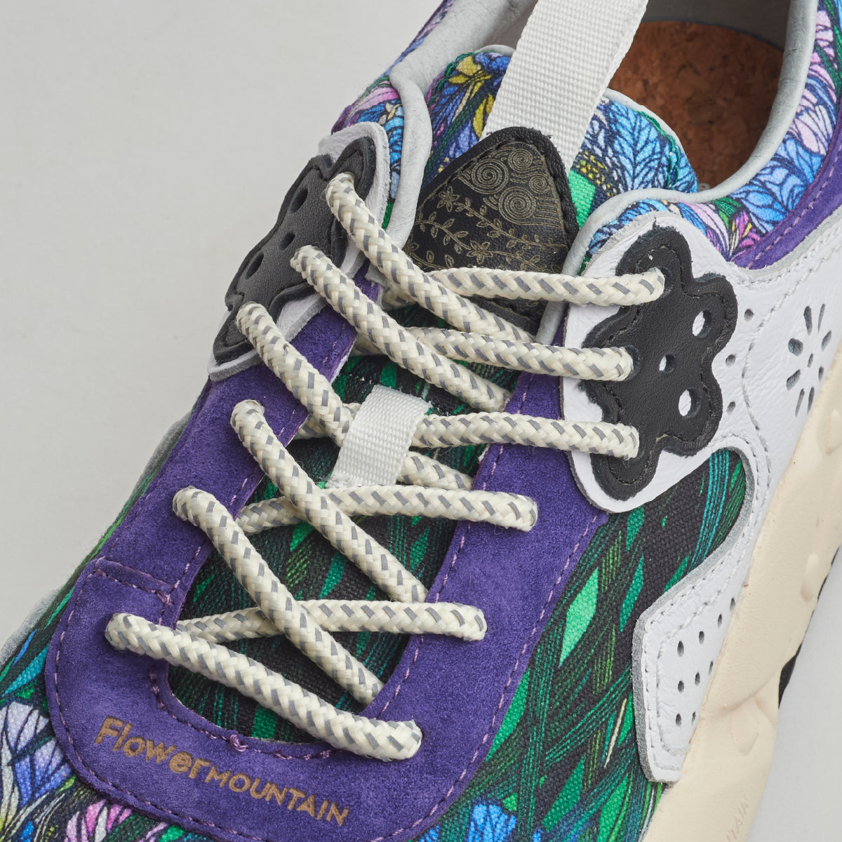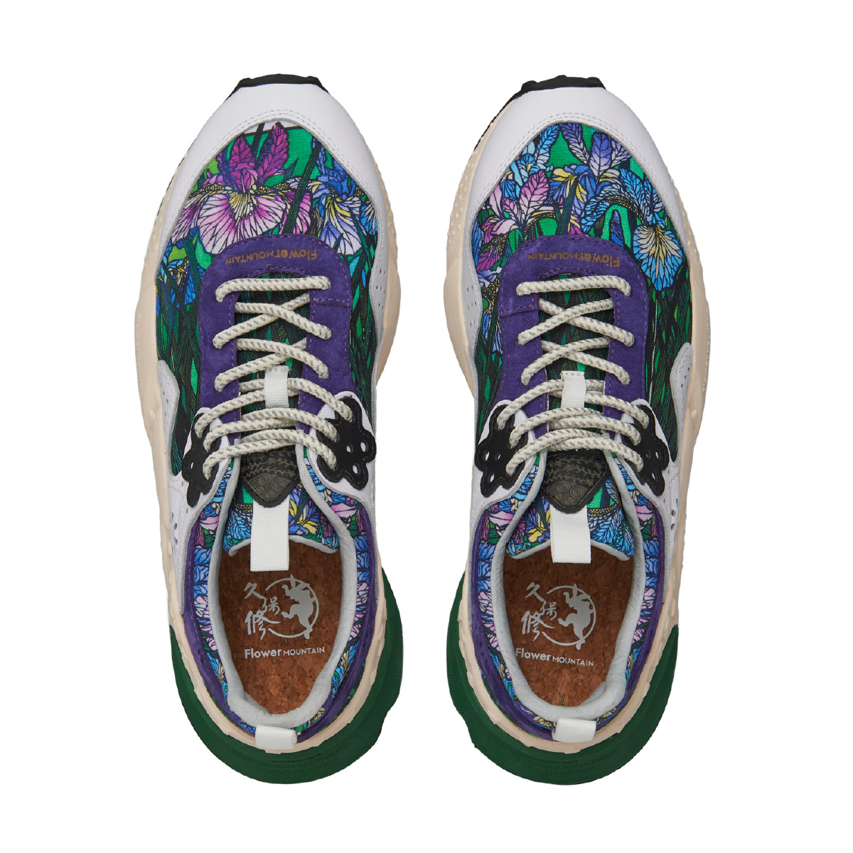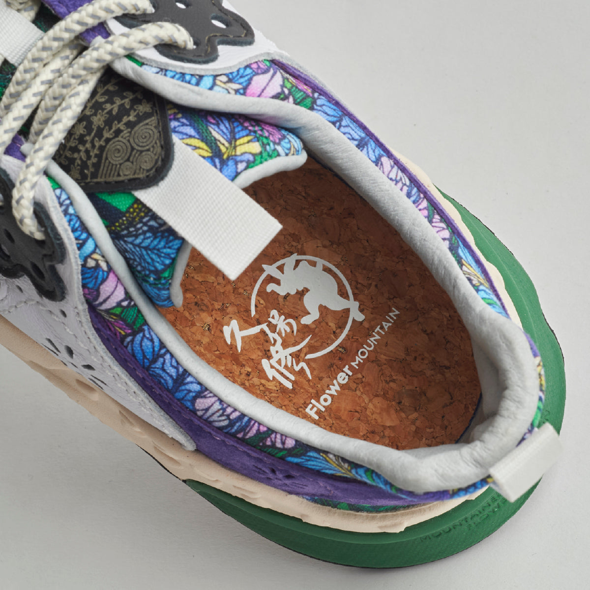 初夏、菖蒲の凛とした青と瑞々しい緑が響き合う。その涼やかな世界を、靴の上にそっと映し出した一足。繊細な切り絵の技法により表現された花びらと葉の陰影がまるで自然の一瞬を取り切ったかのように、足元に静かに咲く。