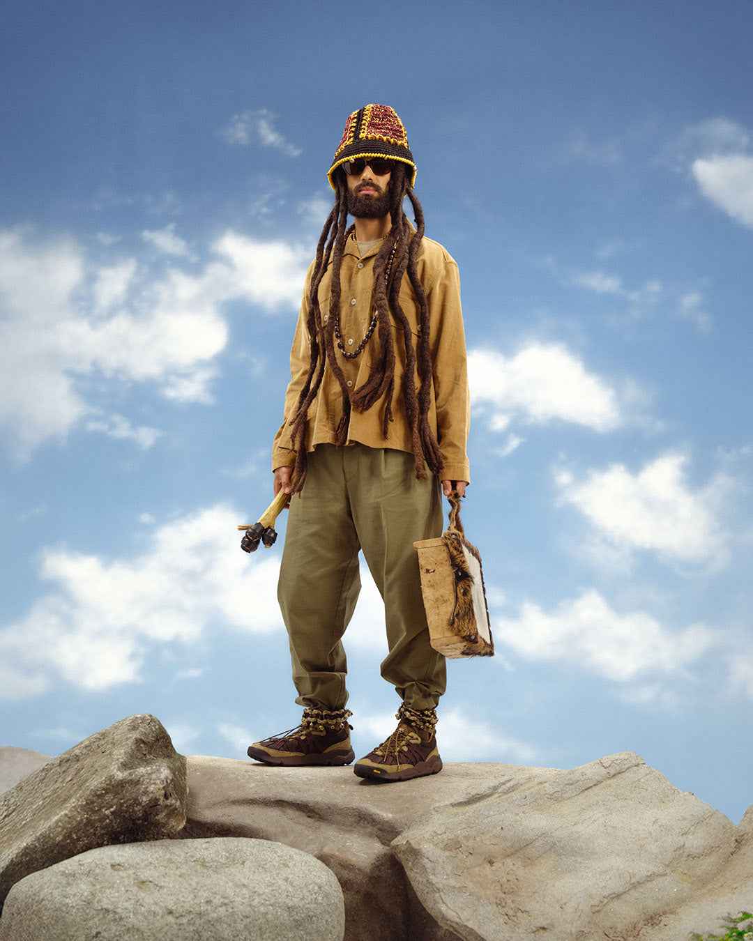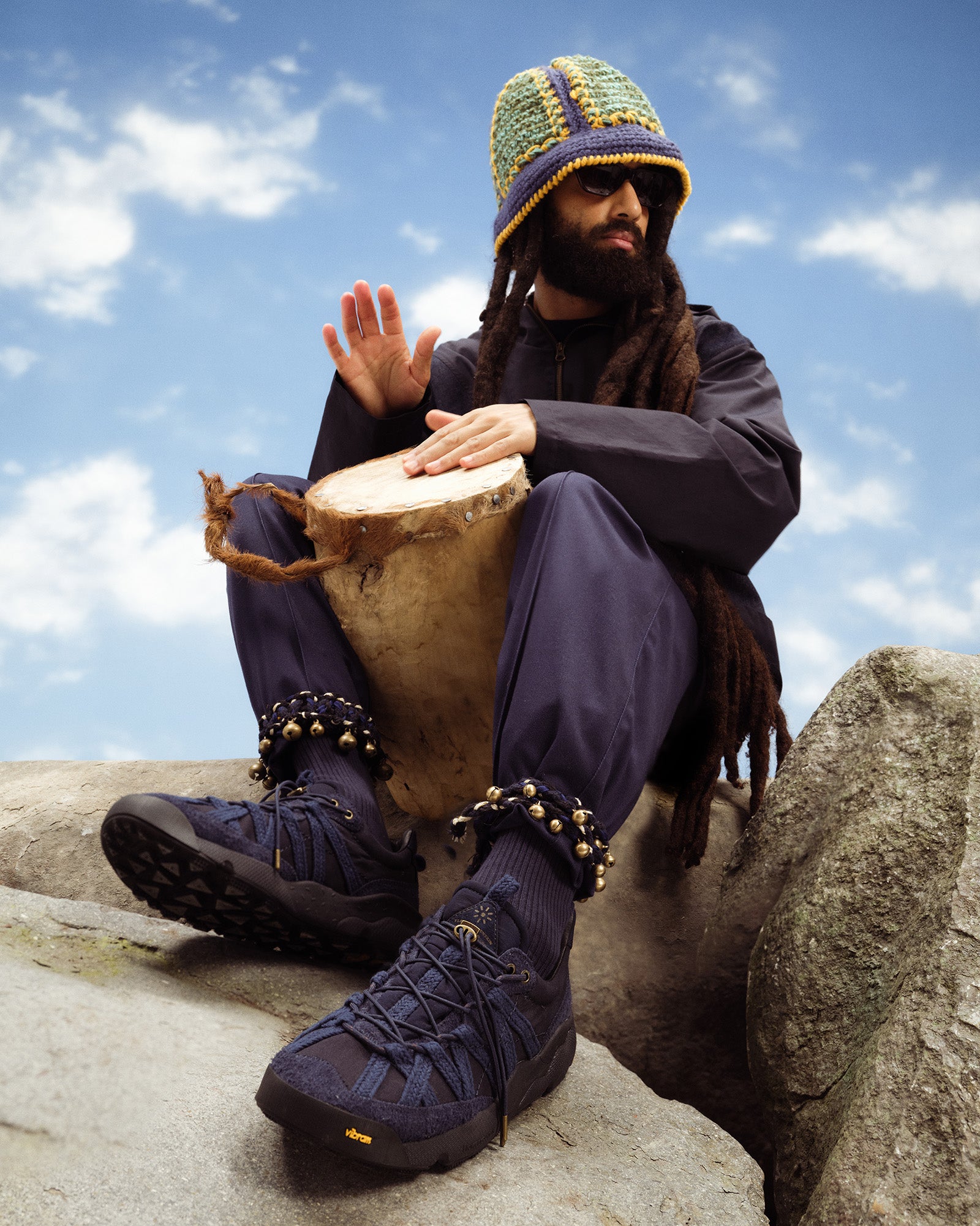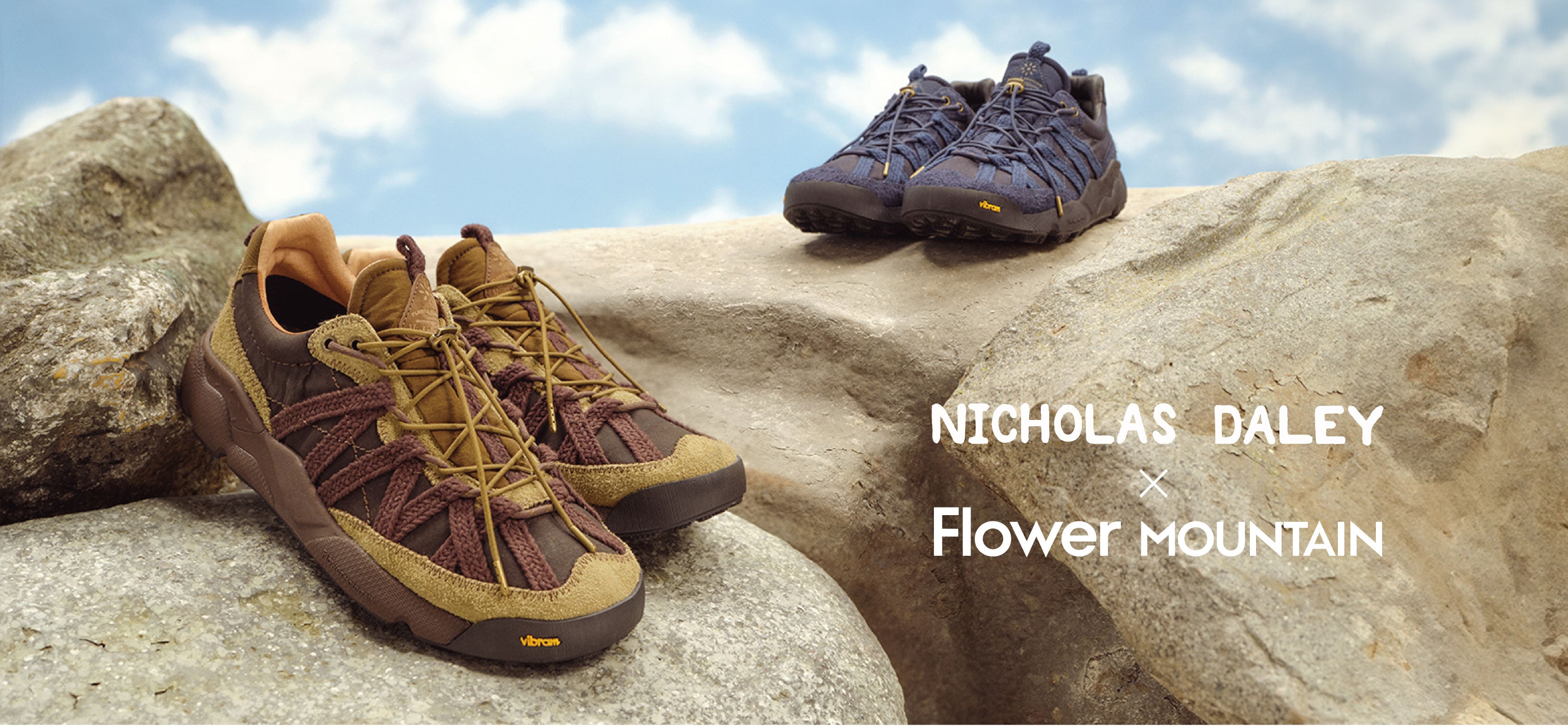 アパレル業界で現在最も注目されているアパレルデザイナーNICHOLAS DALEYとのコラボレーション。ニコラス・デイリーのデザインDNAとフラワーマウンテンのテクニカルパフォーマンスフットウェアがここに融合。現代的で魅力的なデザインと素材がここの誕生
