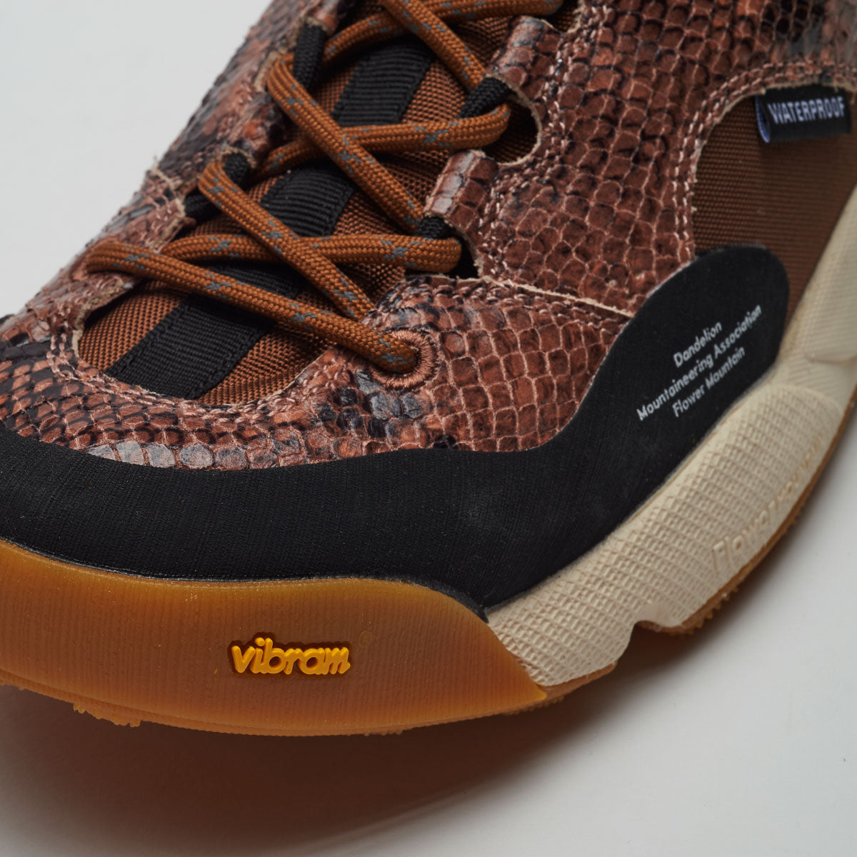 ツーリングには悪路でも確実に路面をグリップするビブラム社の『 MEGA GRIP 』を使用したFlower MOUNTAINオリジナルソールを搭載。フラワーマウンテンのレギュラーモデルの各種スペックがブラッシュアップされた仕様となっている。
