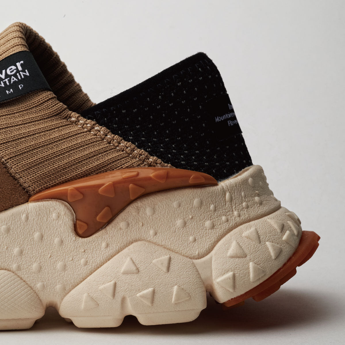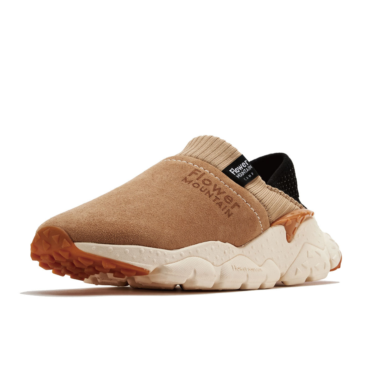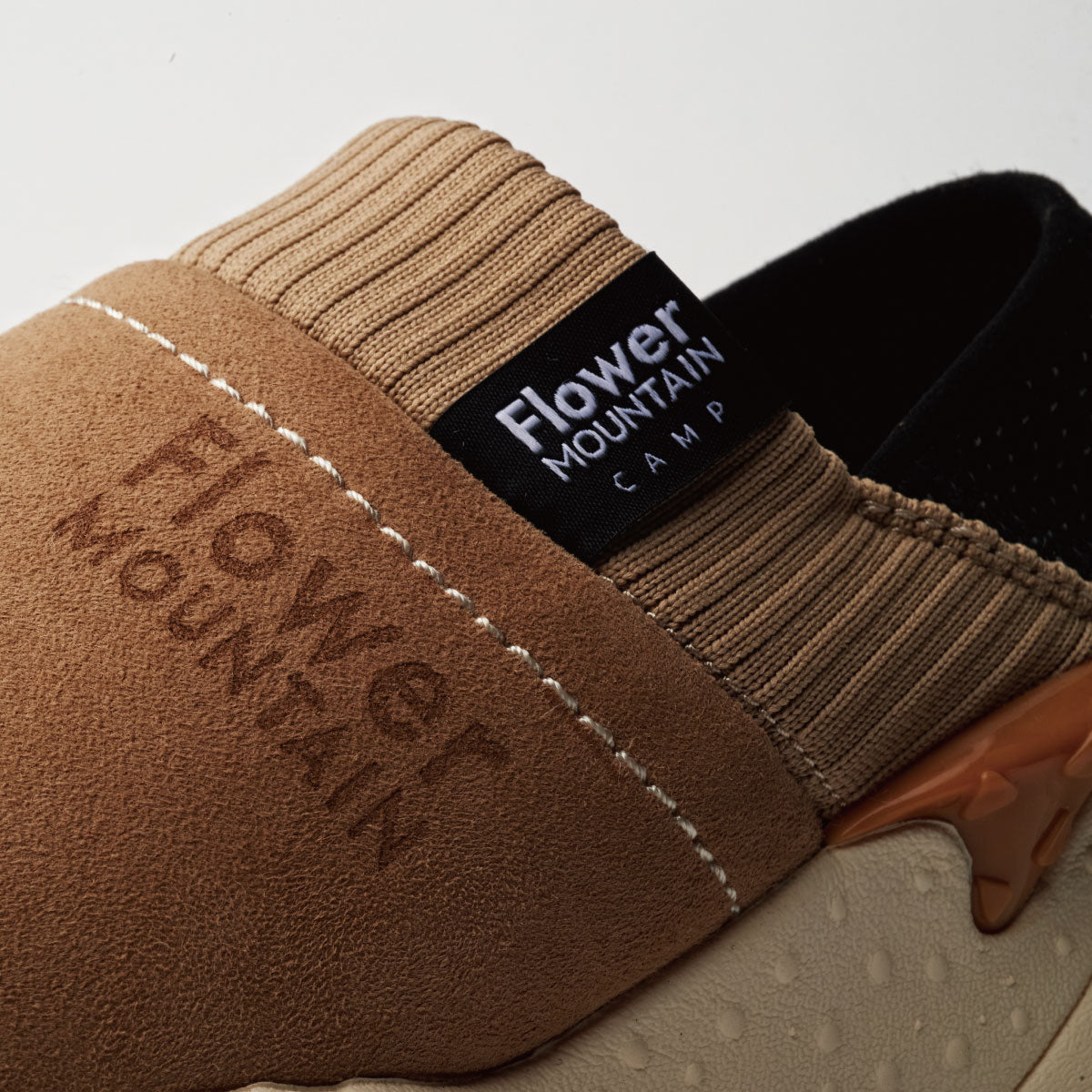 履き口のリブ/かかと部のストレッチ素材によるアクティブな動きに追随するフィット感とサポート感、かかと部分は踏んでスリッパの様に履くことができるEASYな仕様になり、テントへの出入りなど靴の脱ぎ履きが多いキャンプシーンでの機能性に更に暖かさをプラスした豪華な仕様となっている。