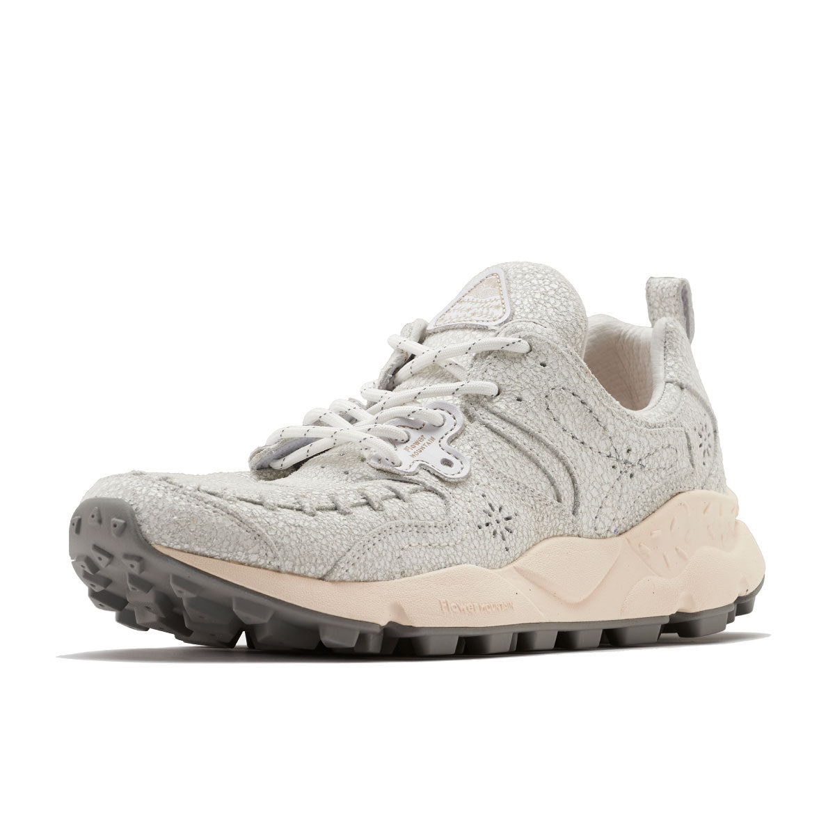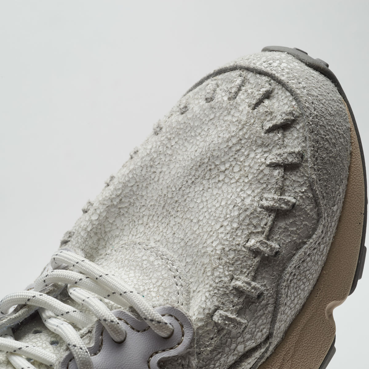 レザーの表面をひび割れ加工したクラックレザーを使用したシンプルな2カラー”WHITE "と"BLACK "の2色がデビュー。革の特性と良さを存分に引き出した原点回帰とも思われるアイテムとなっている。