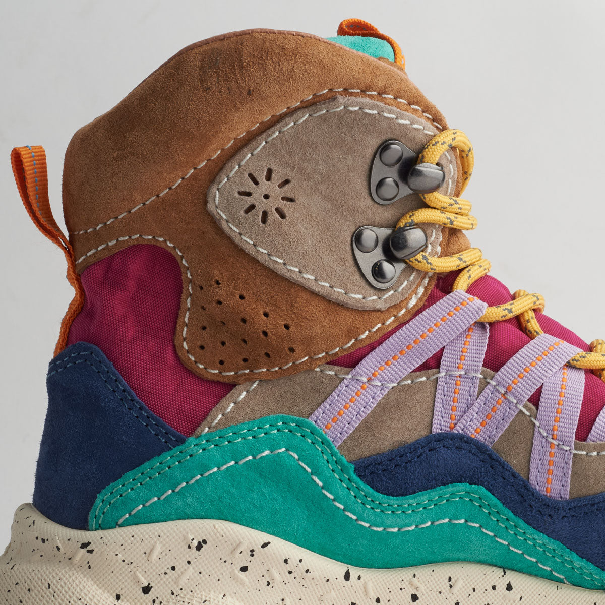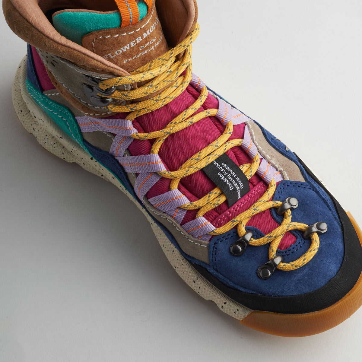 アウトドアシーンでの活躍を約束する” BANKEI “。性能的には”BACK COUNTRY HI ”と双璧をなすが、デザインの源泉はオーセンティックなデザインのBACK COUNTRY HIとは異なる思想をベースに開発されている。” BANKEI “はスニーカーの顔を持つトレッキングシューズという印象を放っており、よりスポーティーな印象に仕上がっている。ライニングには防水ブーティー、ツーリングには悪路でも確実に路面をグリップするビブラム社の『 MEGA GRIP 』を使用したFlower MOUNTAINオリジナルソールを搭載。