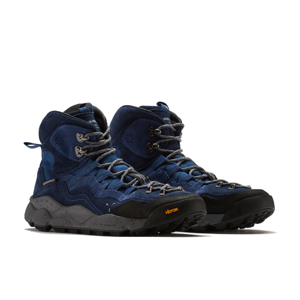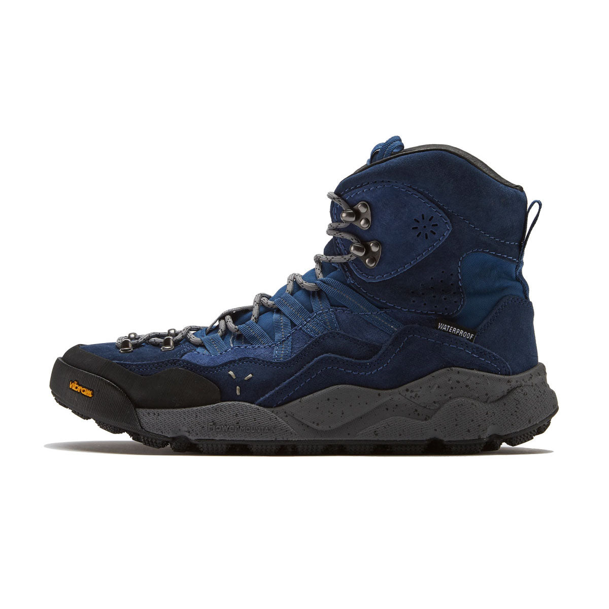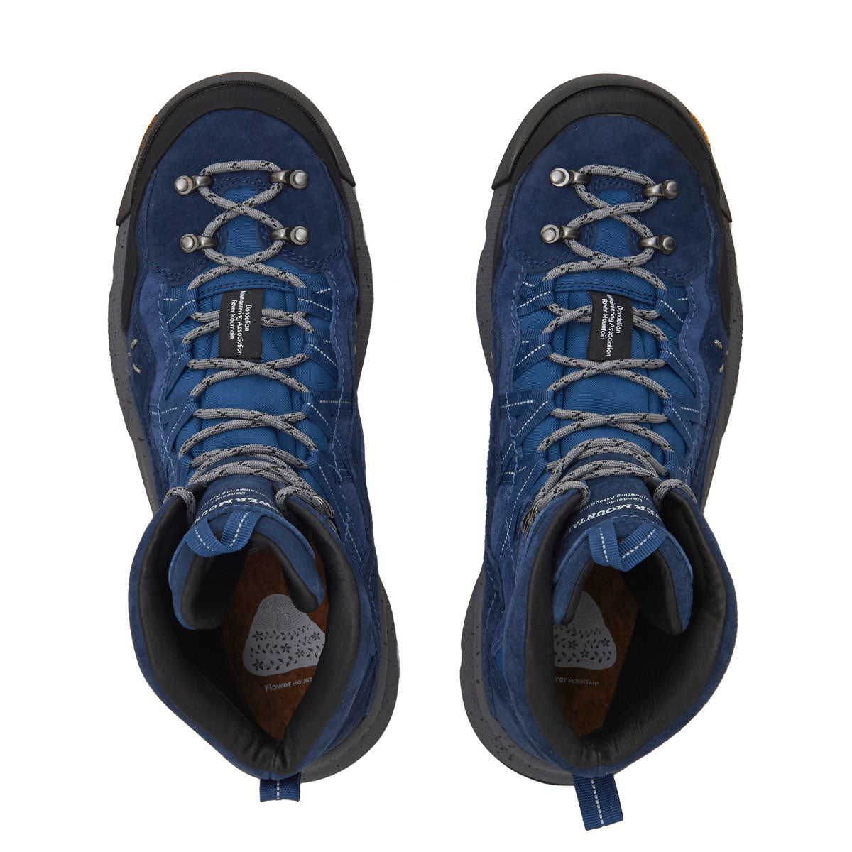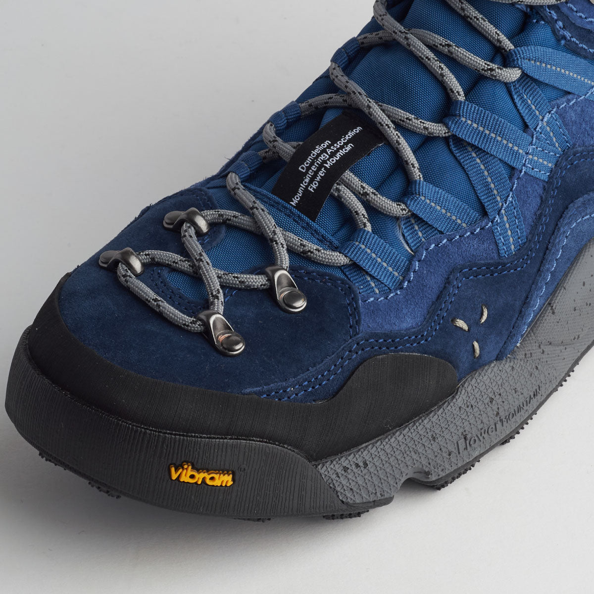 アウトドアシーンでの活躍を約束する” BANKEI “。性能的には”BACK COUNTRY HI ”と双璧をなすが、デザインの源泉はオーセンティックなデザインのBACK COUNTRY HIとは異なる思想をベースに開発されている。” BANKEI “はスニーカーの顔を持つトレッキングシューズという印象を放っており、よりスポーティーな印象に仕上がっている。ライニングには防水ブーティー、ツーリングには悪路でも確実に路面をグリップするビブラム社の『 MEGA GRIP 』を使用したFlower MOUNTAINオリジナルソールを搭載。