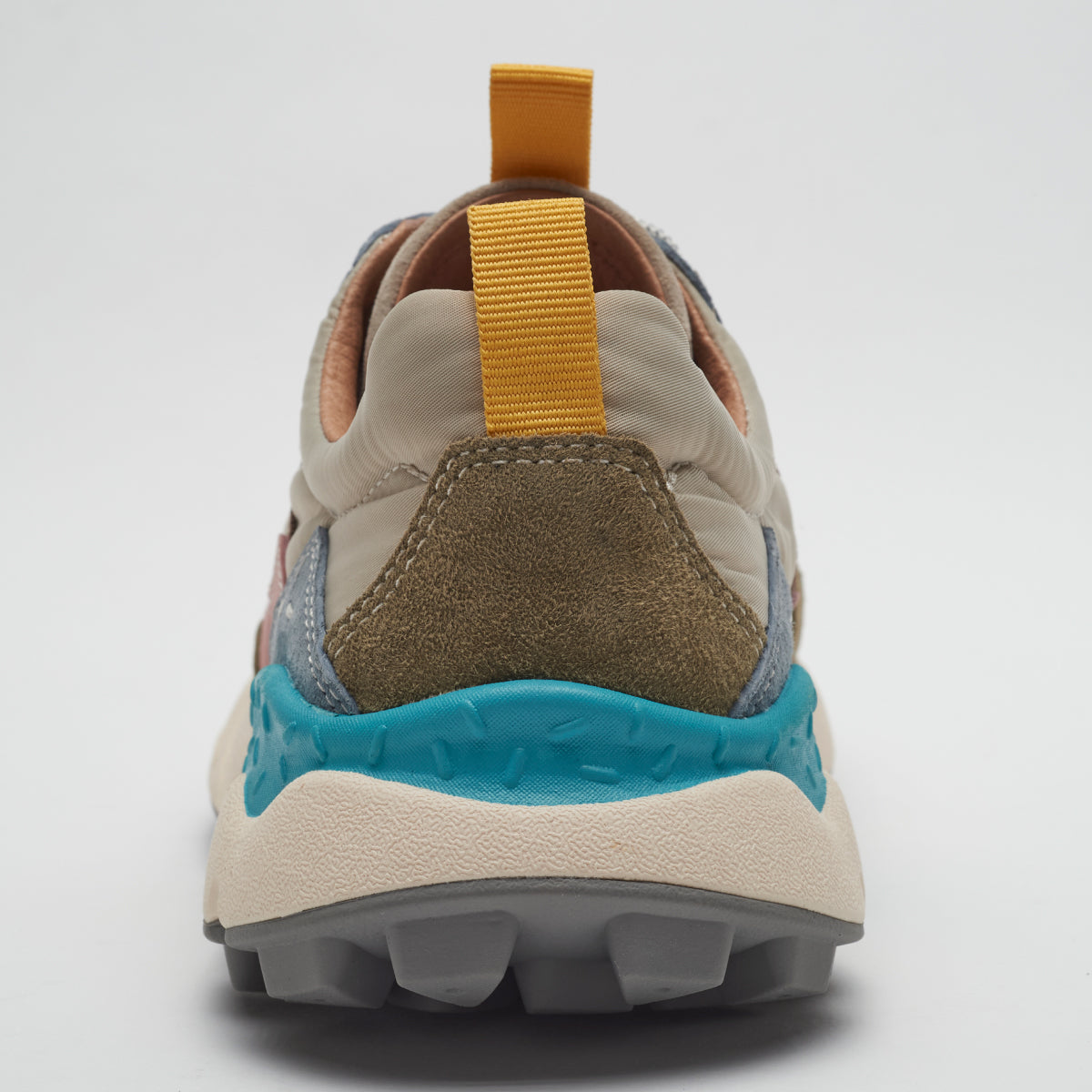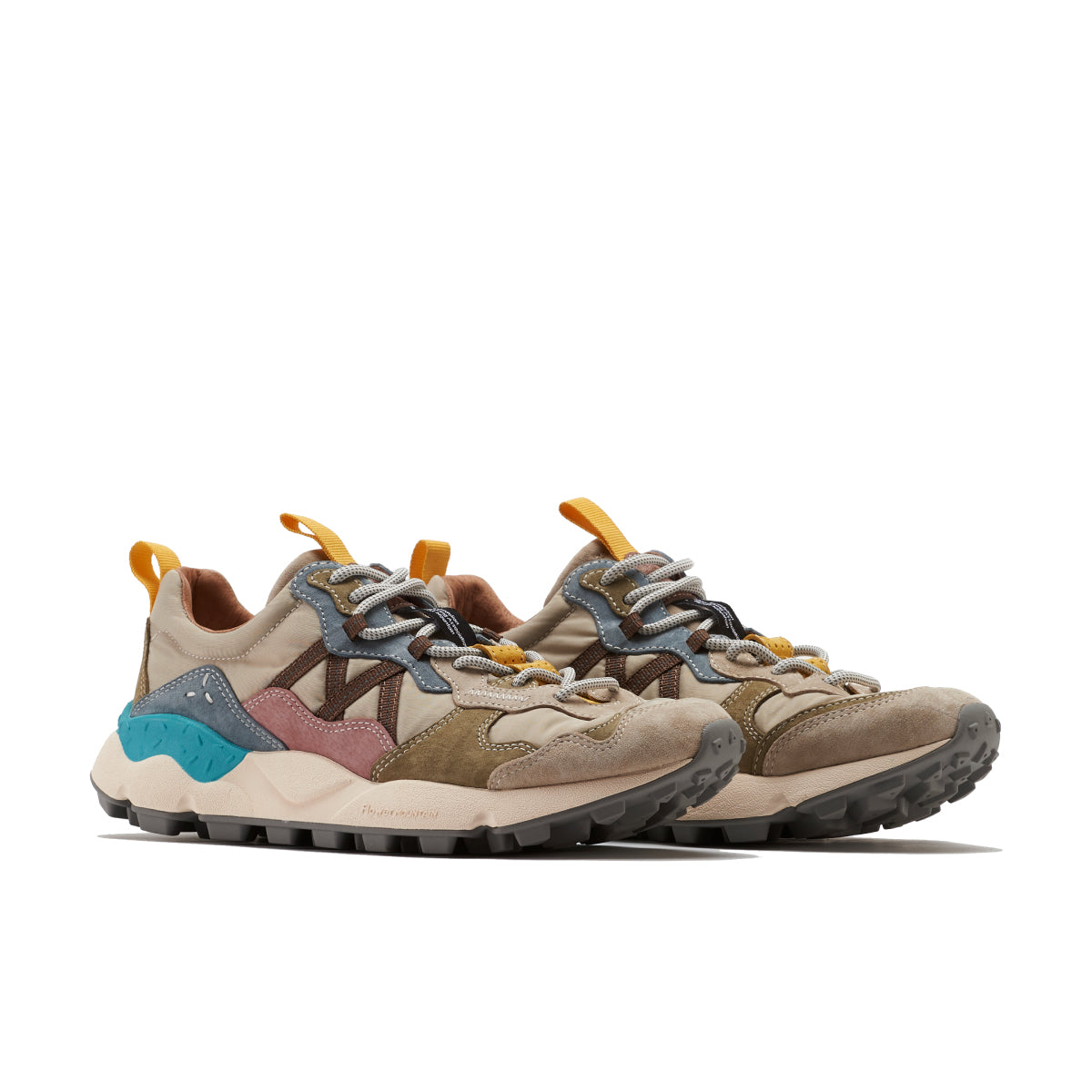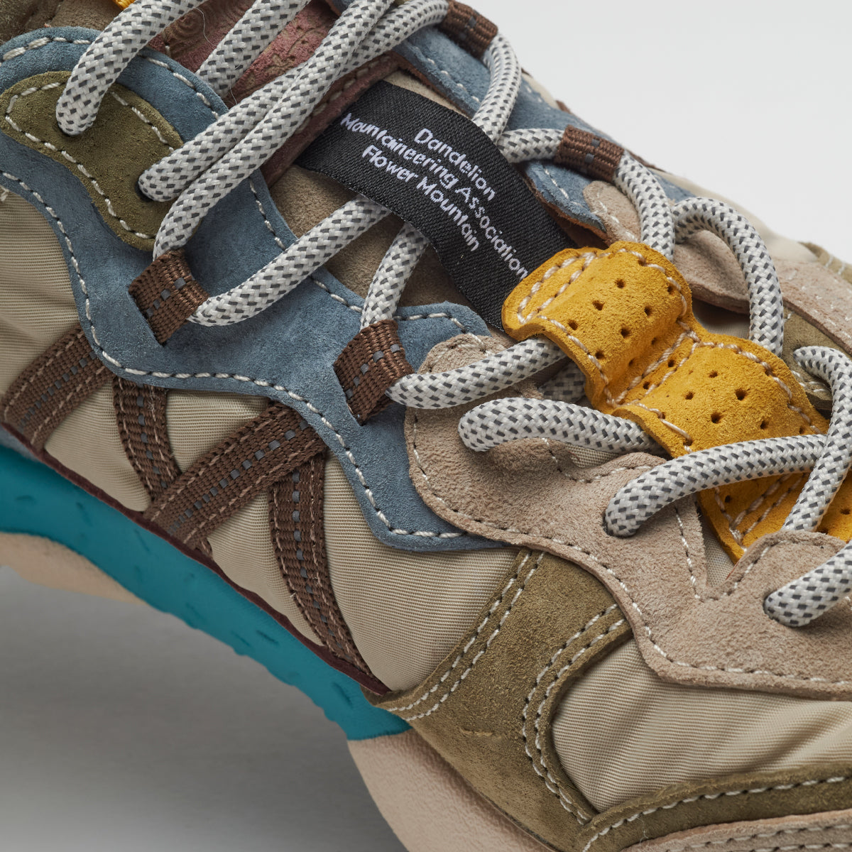 ライトウェイトスニーカー”LENZAN”。 Flower MOUNTAINの特徴でもある重なり合った有機的な曲線のレイヤーを持つ。2パーツが混ざり合いながら構成されるアイレットステイなど、曲線の美しさを表現したデコラティブでクラフト感を持つスニーカーに仕上がっている。もちろんクッション性に富んだソールや抗菌、防臭性を持つ機能はしっかりと踏襲されている。